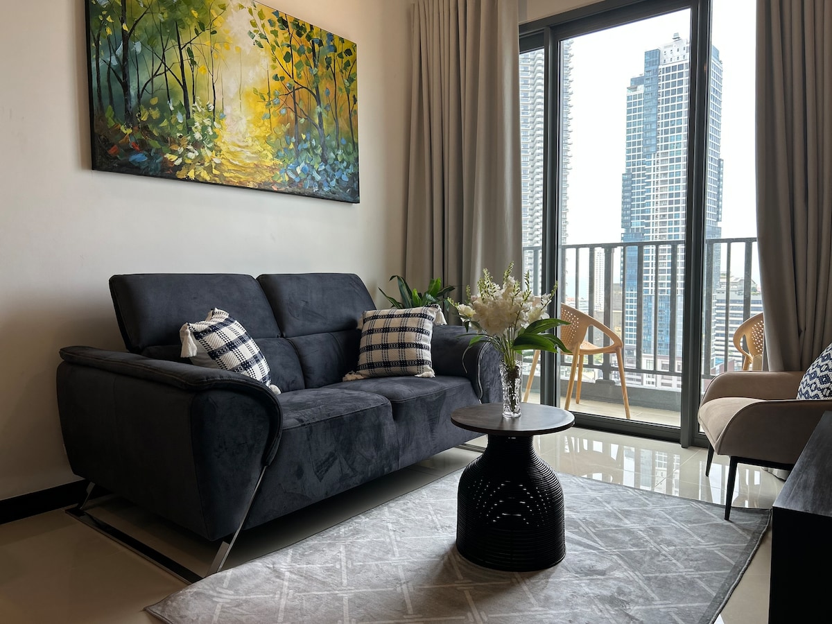 Welcome to your serene 2-bedroom, 2 bathroom condo at Trizen – a beautifully appointed brand new high-rise residence offering spectacular sea, lake and city views. Whether you're visiting for business or leisure, this modern urban retreat promises both luxury and comfort in the heart of Colombo. Enjoy the full Resident Villas experience with thoughtfully curated amenities, personalized touches, and access to resort-style facilities — all designed to make your stay effortless.