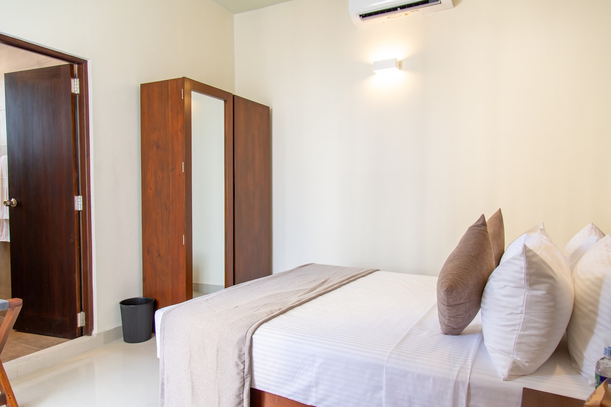 Two bedroom unit, on the 1st floor of the house with separate entrance. Includes a kitchen with pantry and private bathroom. Air-conditioned with WIFI, furnished, self catering kitchenette and hot & cold showers. Distance to the heart of Colombo is only 7 kms. Close to Mount Lavinia beach, leading supermarkets, hotels, Shopping Malls, Public Transport and Restaurants. Tuktuk stand available nearby. one bedroom has air-conditioned and other room has fan facility