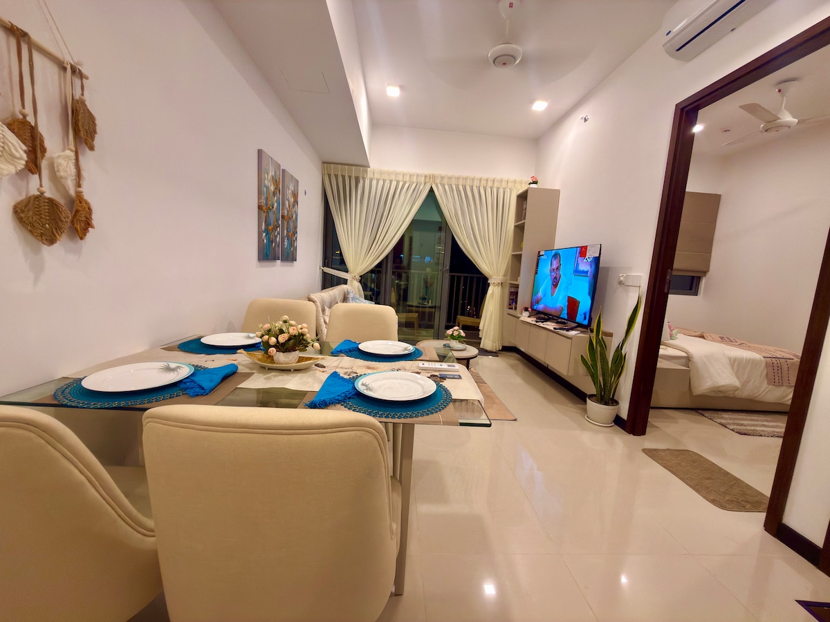 Cozy Apartment in Colombo. Feel at home in this centrally located 2-bedroom smart apartment! Enjoy a Master bedroom (King size bed) for 2 guests. The Master bedroom + 2nd room (Queen size bed) could be booked if there are more than 2 guests with a higher price. The fully equipped kitchen includes an oven, microwave, and more. It’s perfect for families, couples, or business travelers. Super speed WiFi and cable TV, ensure your stay entertained. Easy access to shopping, dining, and attractions.