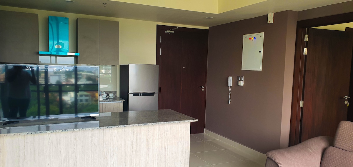 Enjoy a stylish experience at this centrally-located apartment situated on the 11th floor of the Treasure Trove Apartment complex. This is a two bedroom flat with attached bathrooms. The compact pantry is well equipped for the guests to cook and have their meals. The sitting room gives a good view of the surrounding areas. A common pool and a Gym is on the roof top and can be used at any time. The pool table could also be used on request.Many places to eat can be found within a 15 min walk.