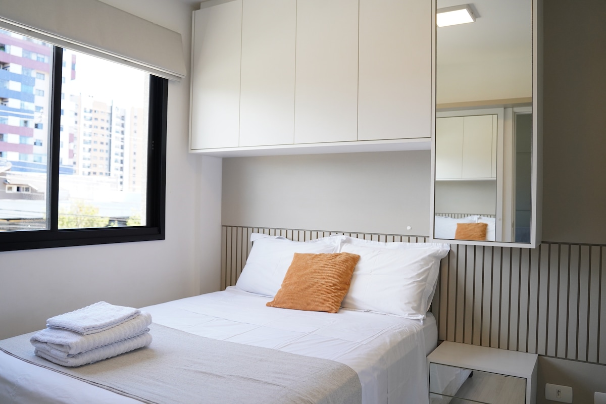 Se você vem a trabalho para Curitiba ou precisa de um lugar pronto para estadias longas, este studio foi preparado para oferecer praticidade, segurança e rotina leve. Diferenciais: temos suporte de zeladoria com troca de roupas básicas de cama/banho e Limpeza Express a cada 15 dias de hospedagem, feita pela zeladora (ambos sob solicitação sem custo) e mais facilidades no local . Studio NOVO de 28 m², com banheiro privativo, sacada ampla, móveis planejados e cozinha compacta completa.