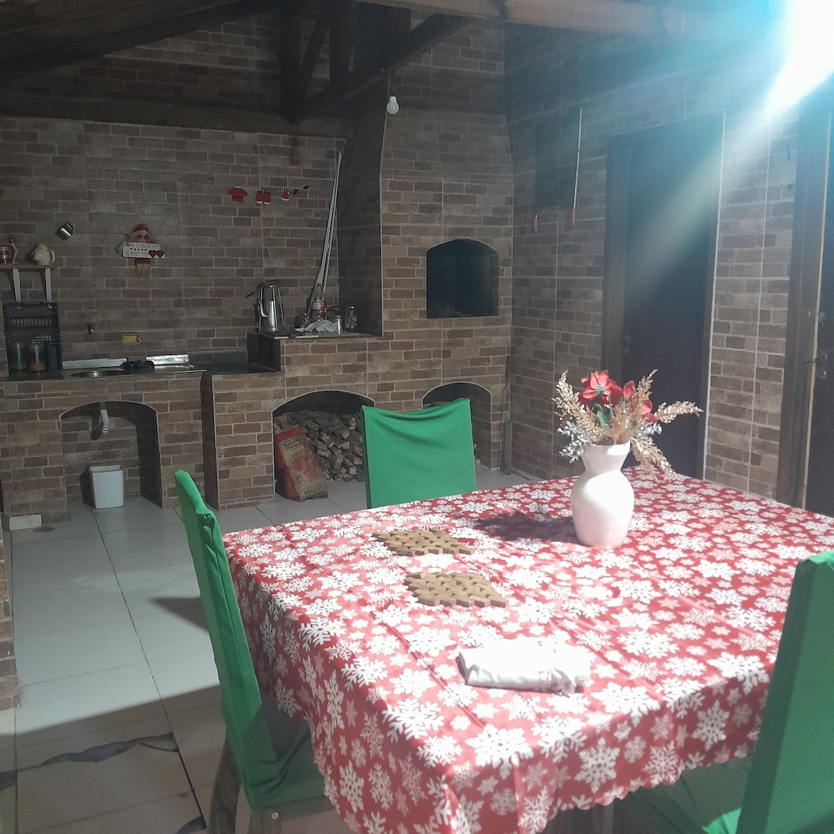 O Cantinho da Dona Vera é uma ótima opção para quem vem passear ou trabalhar em Curitiba. A casa tem uma cozinha completa, dois quartos com uma cama de casal cada e um banheiro completo - não tem sala de estar na casa -, com uma área de festas com churrasqueira (caso você queira usar a churrasqueira com não hóspedes, haverá taxa por convidado), um banheiro social e vaga de garagem para até dois carros. 3,6km do Parque Tanguá 3,2km da Ópera de Arame Esperamos vocês!