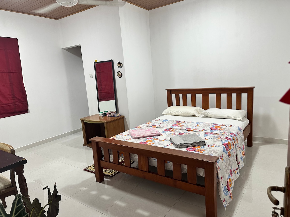 We welcome you to our peaceful and centrally-located apartment. As it is in the first floor with separate access and the bare land at next, this is very calm and quiet area. The price displayed is for 2 persons, but it is possible to accommodate for 7 adults. The kitchen is equipped with everything for you to cook a small meal if you still prefer your own taste. Otherwise, you can taste Sri Lankan food at a walking distance. We welcome you. Thank you