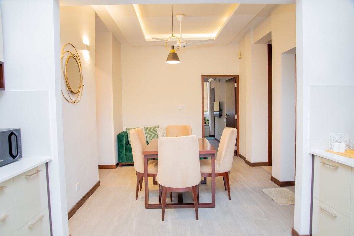 Relax with the whole family at this peaceful place to stay. Comfortable two bedrooms with fully airconditioned. Main Bedroom is with attached Bathroom. Dining/living area. Exclusive ( non shared ) kitchen unit with Gas hob and oven , Separate fridge freezer fell yourself Home away Home. Both bedrooms are with balconies. Ideal Home for a family. Closes to Parliament situated within high security zone. Major supermarkets are nearby.