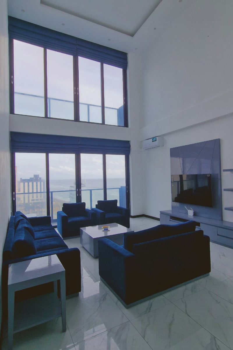 This is a 10 storied Luxury Sea Front apartment complex on Marine Drive, Colombo 04, What we offer here is the penthouse on the top most floor, which consists of 2 Bed Rooms, 2 Bathrooms, open pantry with all amenities, Unique Infinity Swimming pool, Large Living and Dining space which is open to the sea view with a sit out terrace facing the sea, Starlink SpaceX high-speed unlimited satellite internet, beach access is just 15 minutes walk, The Super market is next door. High-end living area.