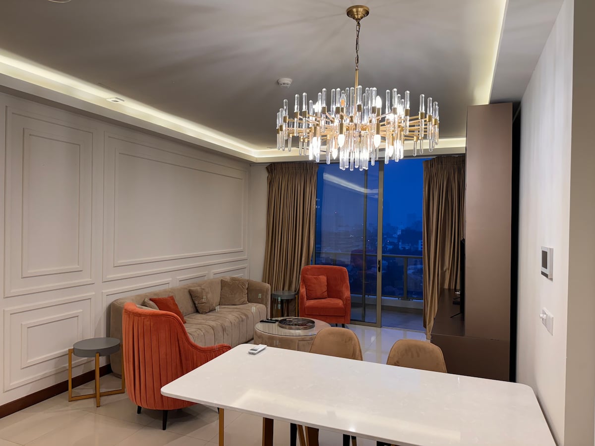 This centrally located 1-bedroom smart apartment, ideal for families, couples, and business travelers, offers a comfortable and convenient stay in Colombo. Conveniently located near shopping, dining, and key city attractions, the apartment features a fully equipped kitchen, as well as a washing machine with a built-in, high-speed Wi-Fi and smart TV. Residents also have access to premium shared amenities, including a gym, jogging track, swimming pools, cinema, car park, and a badminton court.