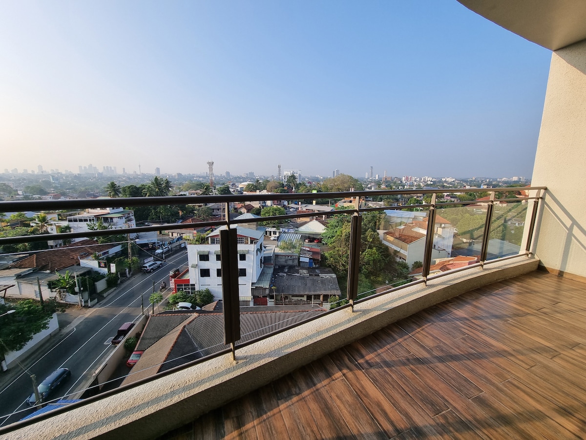Business or Leisure, Enjoy a relaxing, comfy stay in the heart of Sri Jayawardenapura Kotte the capital city of Sri Lanka. A spacious 3 bedroom apartment with mesmerising Panoramic view of the City of Colombo. Fully Air-conditioned, fully equipped kitchen with central gas supply, modern bathrooms, Infinity swimming pool, Jacuzzi, Steam, Business room etc. Powerful backup generator, fibre optic WiFi connectivity, cable TV. Surrounded by Restaurants and Supermarkets all within walking distance.