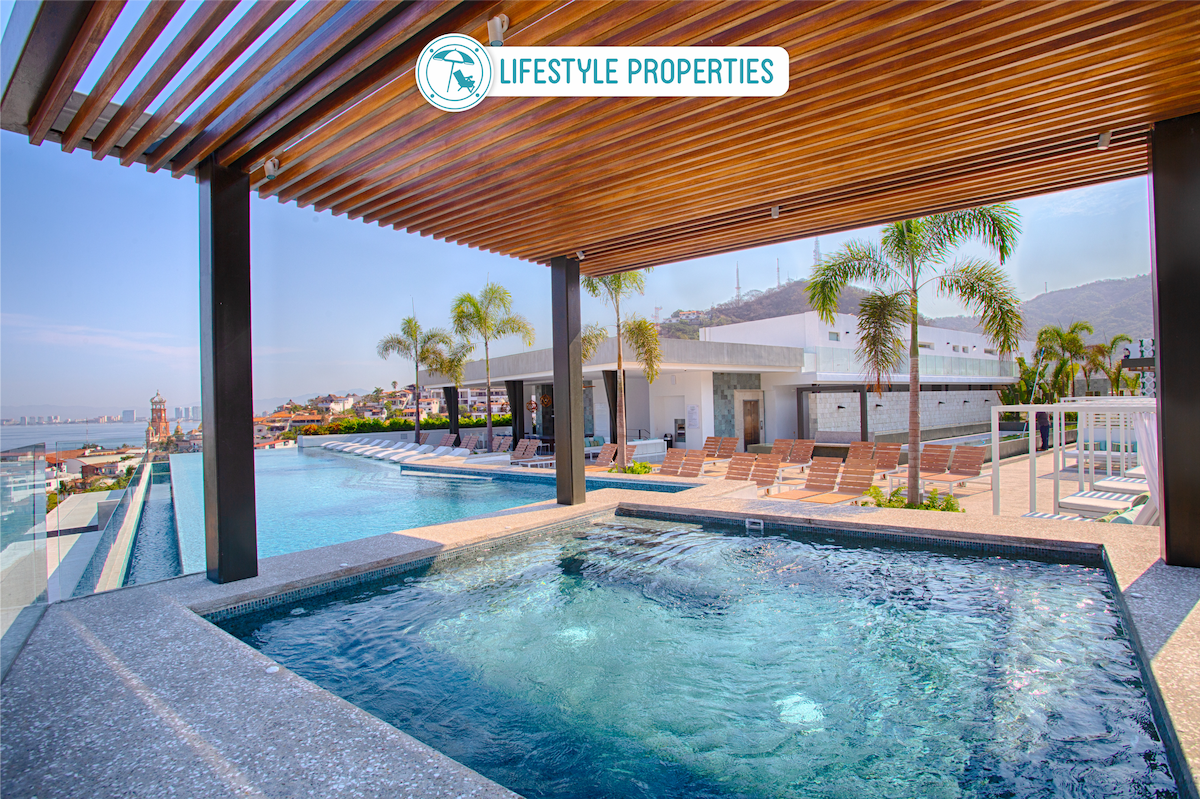 Ocean views, rooftop sunsets, and the best of Puerto Vallarta at your doorstep. This modern 1BR condo sits high on the 11th floor of the luxury 105 Sail View in the heart of Zona Romántica — three short blocks from Playa Los Muertos. Step outside to cafés, galleries, beach clubs, and nightlife… then come home to quiet, elevation, and sweeping Pacific views. Morning coffee on your balcony, afternoons at the infinity pool, evenings watching the sun melt into the ocean — floating above it all.