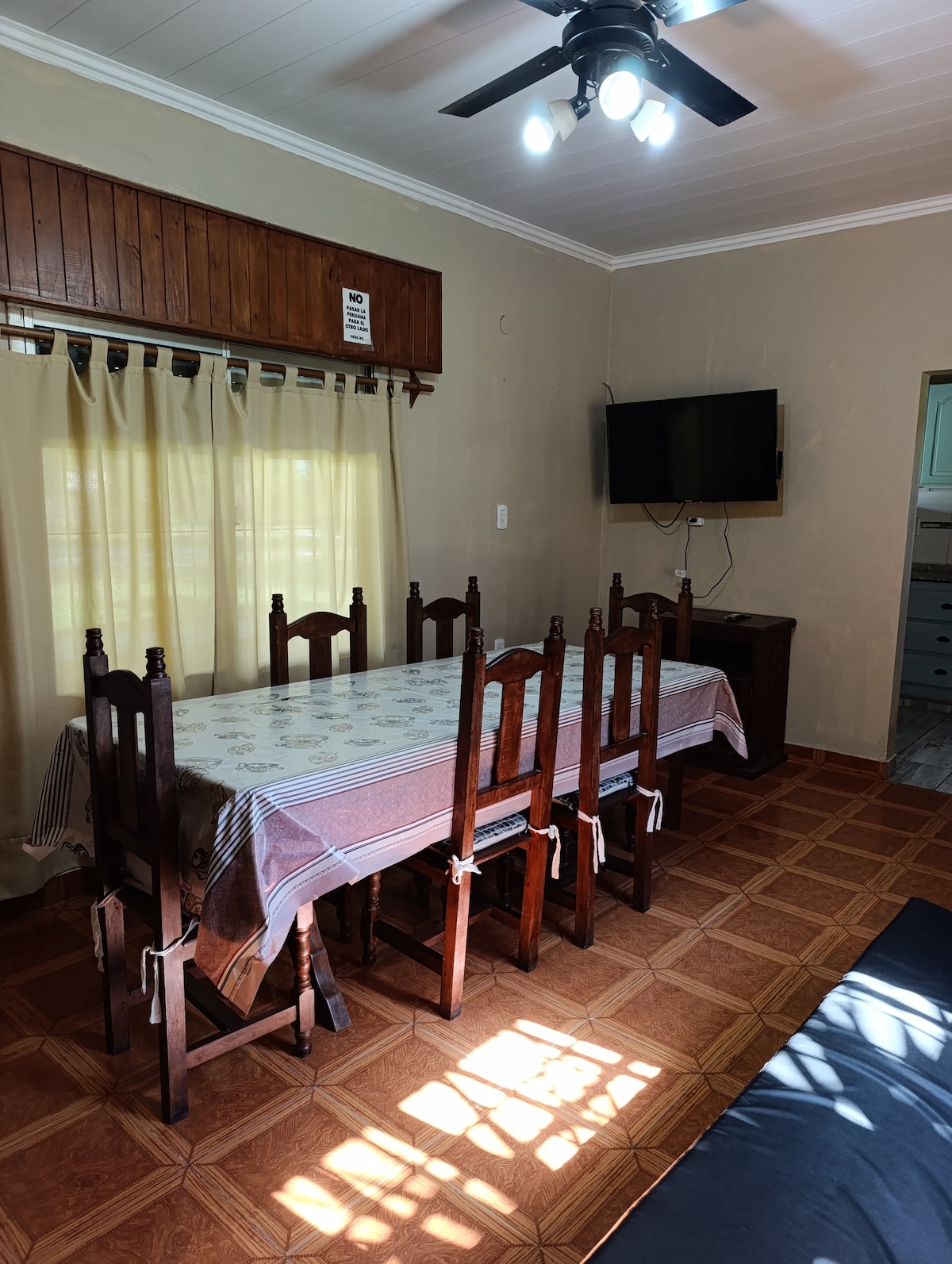 LUGAR PARAISO Ubicacion perfecta, lugar tranquilo sin ruidos para encontrarse con la naturaleza a 3 cuadras del Río. Casa totalmente equipada para pasar unas vacaciones perfectas. -Wifi en toda la casa y TV con Cable -Aire Acondicionado Frio/Calor -Cocina Totalmente Equipada (Anafe 4 Hornallas, Horno, Heladera, Dispenser de Agua, Vajilla Completa, y demas Accesorios). - Once 64 seis 8 siete 9 seis2 -Parrilla con lavadero e iluminación. -Parque de grandes dimensiones para disfrutar en familia.