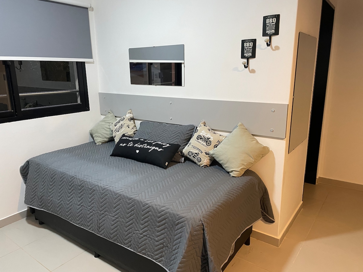 Disfruta de una experiencia con estilo en el centro de la ciudad, muy cerca de la calle principal y de múltiples servicios, como son restaurantes, comercios, shopping, supermercados, estación de servicio y mucho más… Con ingreso autónomo para mayor comodidad y flexibilidad. El apto cuenta con muebles modernos y de calidad, para que disfrute su estadía ya sea por negocios o por placer. Te garantizamos una estadía increíble con todos los servicios para que te sientas como en casa.