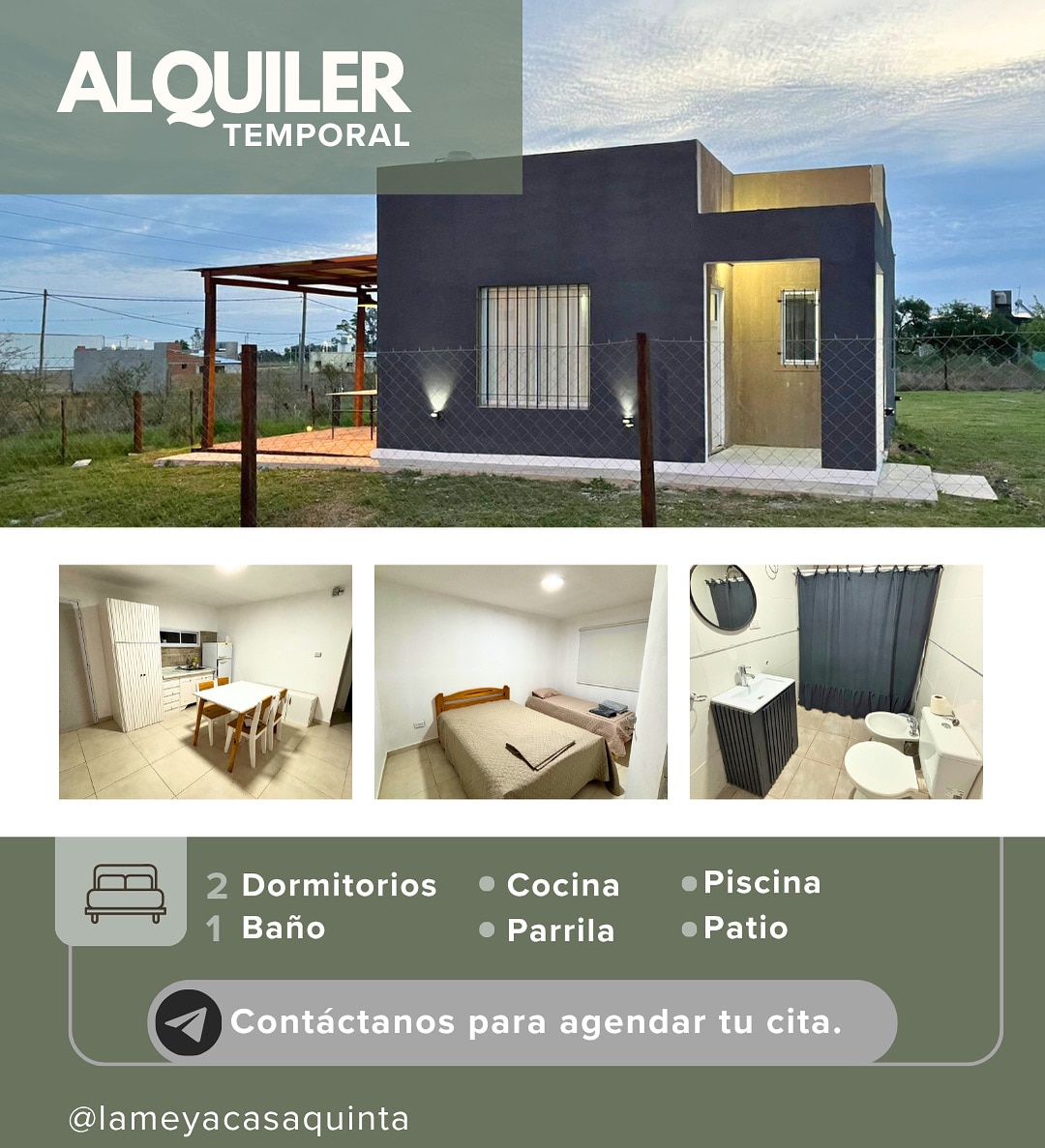 Chacra para 7 personas con piscina, pensada para vivir momentos únicos en plena naturaleza. Rodeada de verde y tranquilidad, es el lugar ideal para desconectar del ritmo diario y reconectar con lo simple. Sus espacios amplios invitan al descanso, las reuniones al aire libre y los días de sol junto a la piscina. Totalmente equipada para una estadía cómoda, combina privacidad, naturaleza y confort, perfecta para escapadas en familia o con amigos.