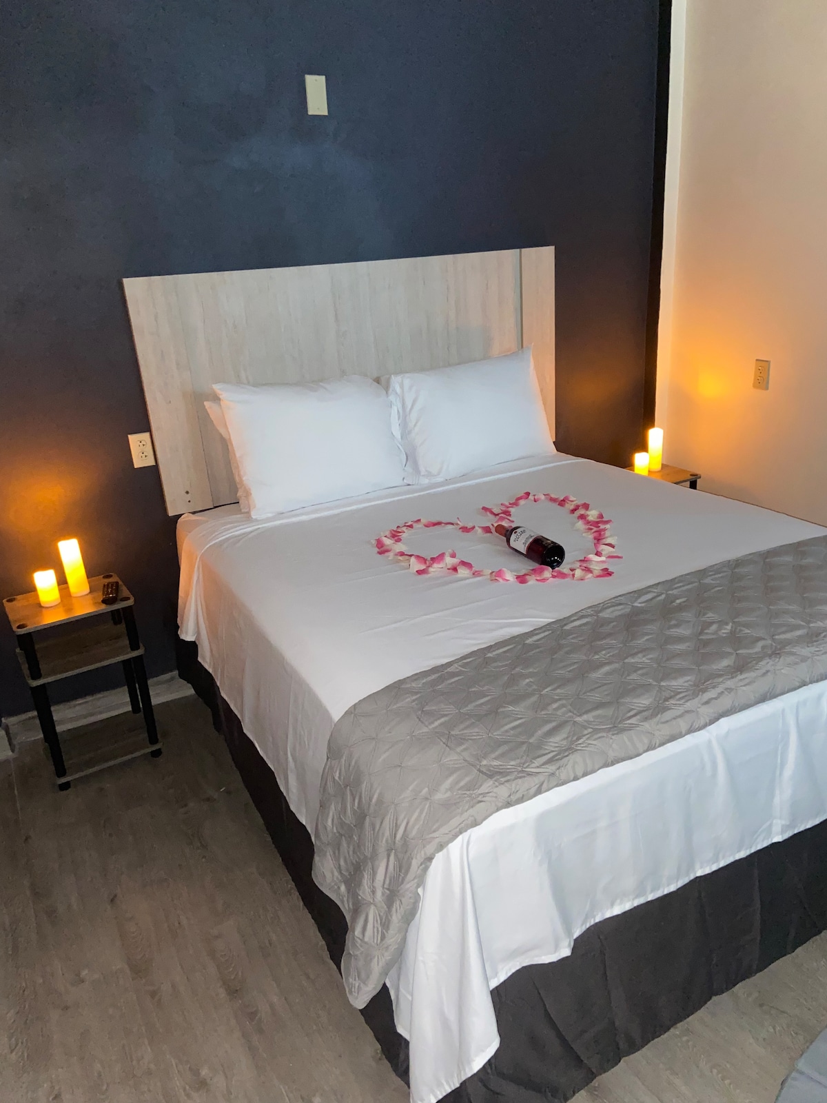 Ubicado a 2 cuadras del parque central, la habitación cuenta con cama matrimonial, baño completo, A/C, TV, una pequeña estación de trabajo, refrigeradora minibar, microondas y cafetera lista para tu café antes de partir.