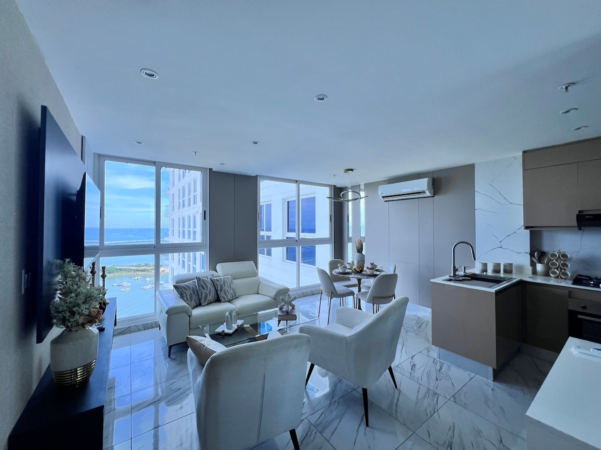 ➤ Ocean View, warmly decorated Apartment in in a Privileged location in Panama City ★ Perfect for Remote Workers ★ Walk 5-10 mins to Restaurants, Supermarkets, Multiplaza Mall, Cafes & Shopping ➤ Building Highlights: ★ State-of-the-art Gym ★ Co-Working Space with High-Speed 500 MB internet ★ Saltwater Pool on the Rooftop Terrace ★ High-Speed 150 MB internet ★ One parking spot with vallet parking. ➤ Located in Central San Francisco: Rooftop Pool | Explore the City Easily | Uber-Friendly