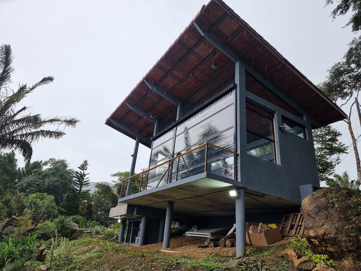 This home is located 800 meters in altitude with california equivalent climate. It opens on 3 sides which makes you one with nature (outdoor shower). However, it has all the amenties needed for a long stay including wifi,tv, full kitchen washer/dryer and a fire pit/barbecue. There is a loft that can sleep an additional 2 people . There are breathtaking mountain and ocean views and is located in a up scale planned community with security gated access. Property has a RING securrity system.
