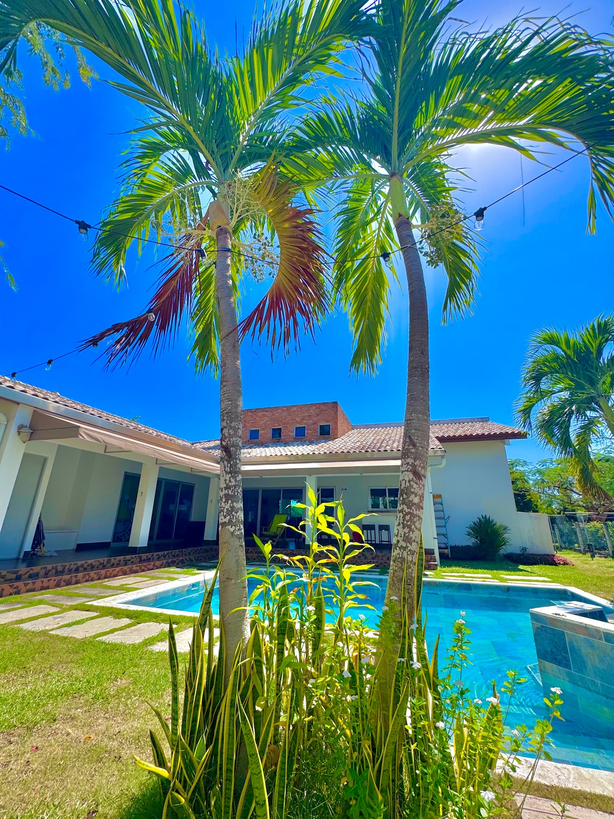 "Disconnect from the routine and enjoy a sunny environment. Just breathe fresh air in a different surroundings. Enjoy a few days in the pool, relaxed in a hammock and of course steps from a spectacular beach with views of the city and islands. The house has 4 bedrooms, 3.5 bathrooms, electric plant and all the facilities to enjoy and rest. Close to restaurants and the best beach to do and see kitesurfing adventures, fish, SUP, etc. Only 90 minutes from the city"