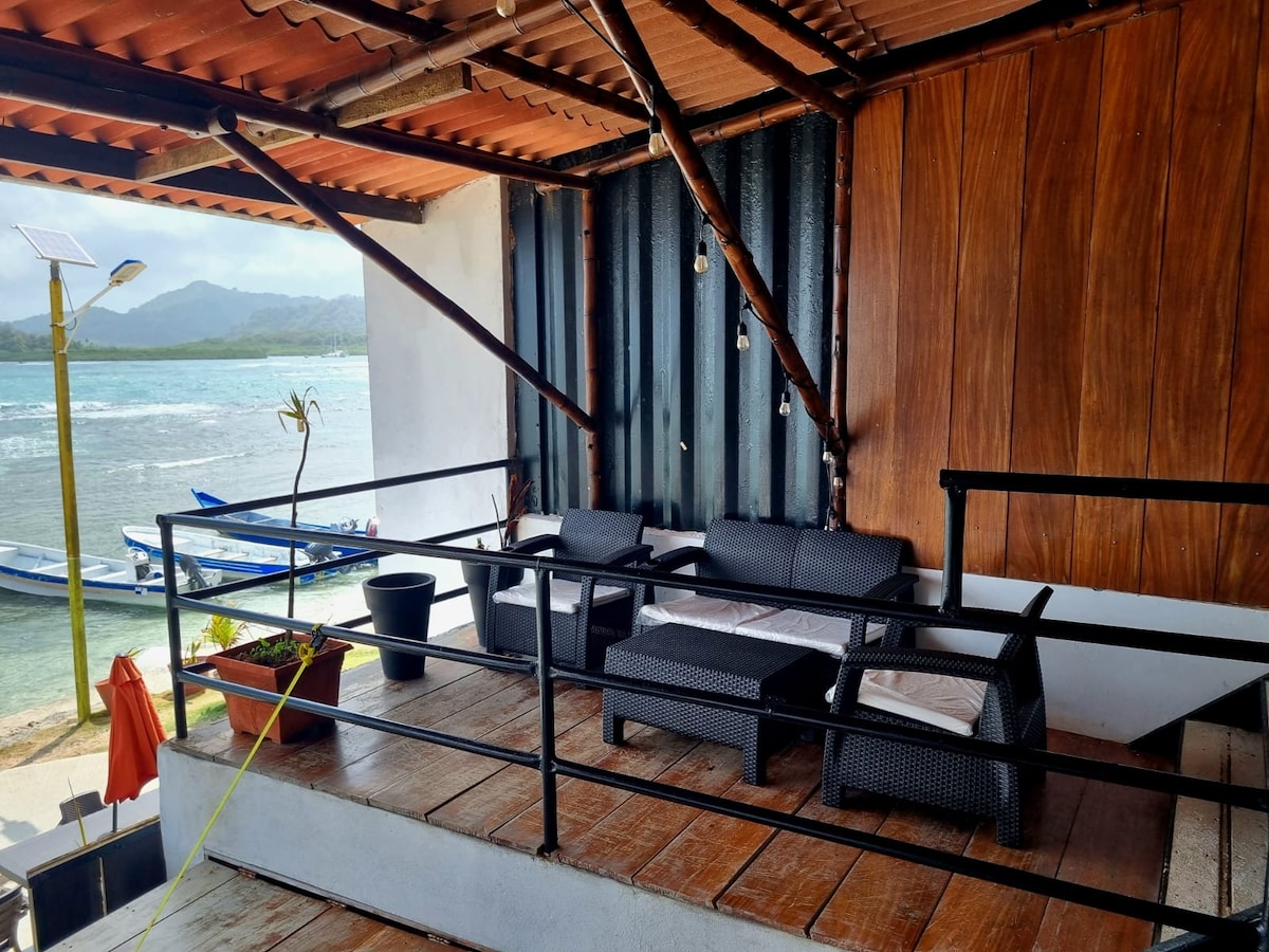Bajo del Congo Our Rooms are built with Shipping containers, bamboo, and naturally fallen hardwoods providing a cool atmosphere, & tasteful decoration. All rooms offer a unique view of the most stunning islands in the Caribbean, watching the surf or watching the sunrise over the Caribbean Sea!