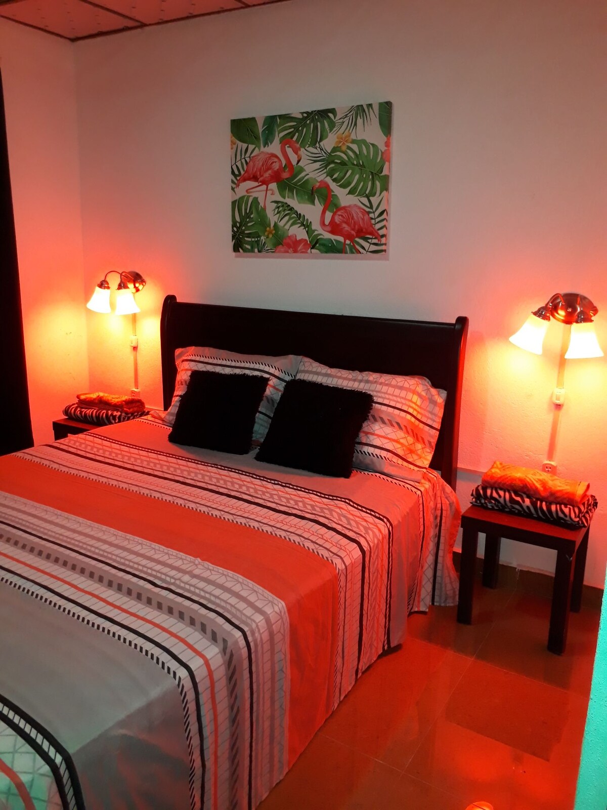 Tranquila y espaciosa villa en Portobelo, Buenaventura. Disfrute de una villa con un gigante jardín, rio, cancha de fútbol, piscina con cascada y tobogán , 2 bohíos, áreas de barbacoa, terraza. 1 recámara principal con cama king y baño privado. 2 recamaras con 2 camas full. 1 baño en la sala. 1 baño en el área de la piscina y ducha externa. Sala, Comedor. Televisor por cable. Cocina equipada. Hamacas. * la casa está equipada con camas para 10 personas, llevar colchones inflables con sábanas.