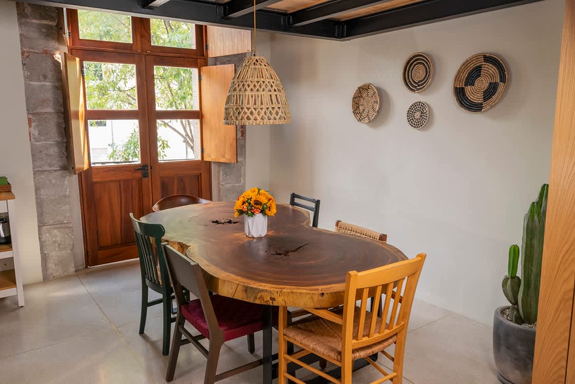 You will enjoy the entire upper floor of this 1910's home, built in the Porfiriato style. High ceilings, crown molding, wood floors, brass fixtures and sun-lit inner balcony. You'll be conveniently situated at the juncture of the Juarez, Centro and Roma Norte neighborhoods— with so much to see, do and to eat and drink nearby! It was designed to recreate classical comfort, yet contains all modern work and life practicalities (incl. strong Wi-Fi!).