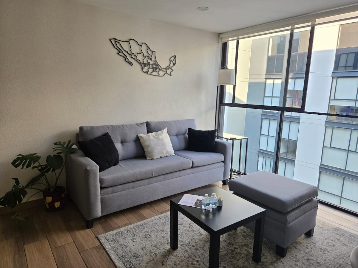 Enjoy a bright, stylish, and centrally located Apt, perfect for short or long stays, remote work, or extended trips. It features 200 Mbps high-speed WiFi and access to a shared gym and rooftop, ideal to keep your routine and relax outdoors. Located in an iconic area of Mexico City, surrounded by culture, architecture, public transportation, and great food, with a lively mix of locals and travelers. Walk: 1 km Monument to the Revolution, 1.5 km Angel, 2.5 km Roma, 3km Condesa, 3.5 Historic Center