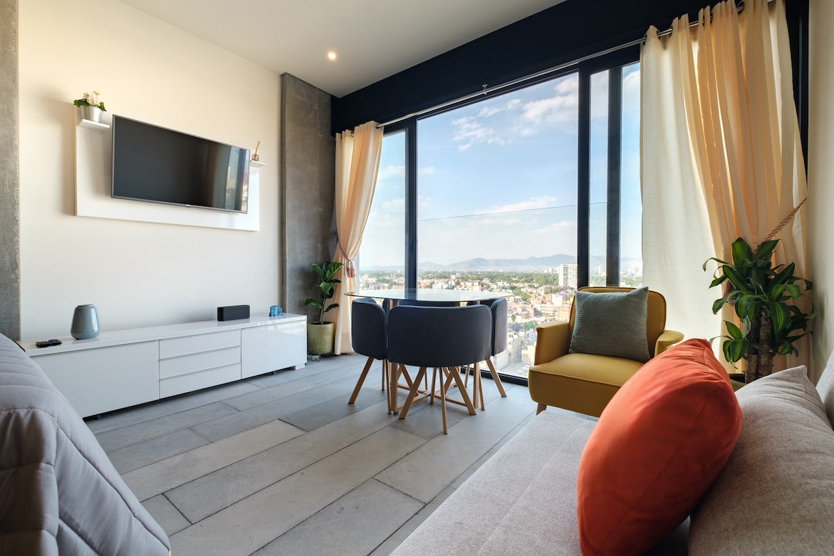 Enjoy one of the most amazing neighborhoods in Mexico City. This place is central and surrounded by restaurants, museums, and iconic landmarks within the city. The area is terrific and very well connected to the whole city. You will love the view from one of the tallest buildings in the city. Undoubtedly, it’s an outstanding place to stay and experience one of the best and biggest cities in the world.