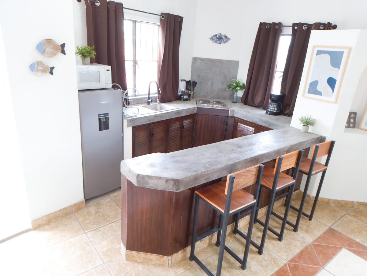 Cozy chic Studio 8 minute drive to the beach! Surrounded by tropical plants and traditional living. Enjoy free WIFI and A/C in our comfy sofa and stream your favorite movie while relaxing and enjoying your stay. We are conveniently located 10 minutes from the Malecon. Local convenience store, liquor store, and pharmacy is only a few homes away. Costco is only 8 minutes away! Multi Sports recreational center (Estadio Municipal) is only 5 minutes away!! Find your peace & serenity in this gem!