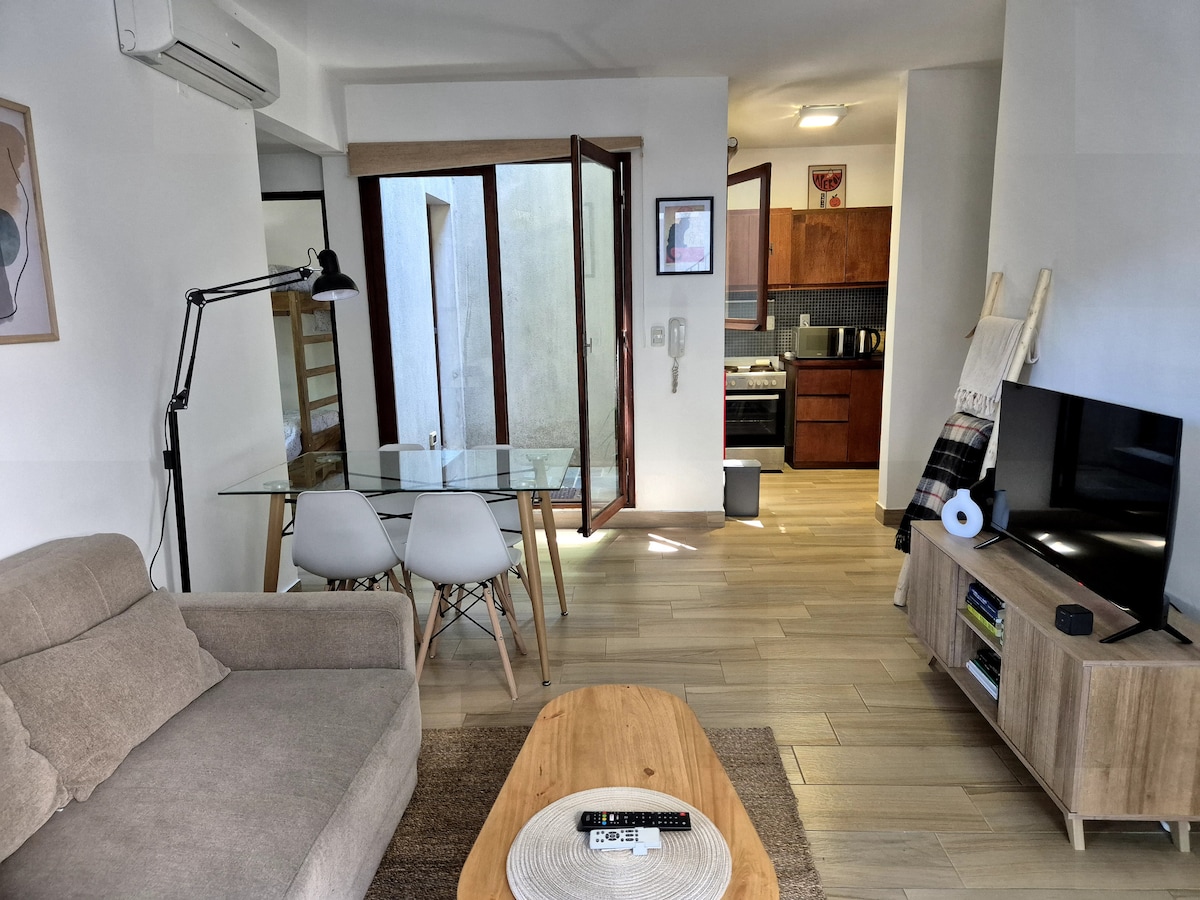Comodo apartamento con todas las facilidades para 4 personas: utensillos de cocina, toallas, sábanas y mantas. También: A/C, TV cable, WIFI, lavarropas y espacio para estacionar tu vehiculo. Familias bienvenidas! *Distancias a puntos de interés: Playa: 900 metros (10 minutos caminando) Plaza de toros: 1.1 km (14 min caminando) Colonia Shopping: 4km (40 minutos caminando) Puerto: 4.4 km Barrio historico: 4.7 km (45 min caminando)