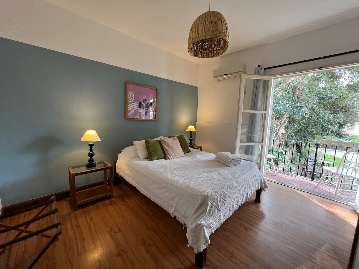 Habitación doble con Kitchen y baño privado en Posada Burucuyá, Aire acondicionado, wifi y tv con Netflix. Posada tranquila y céntrica, a pasos de casco histórico, rambla y terminal de buses