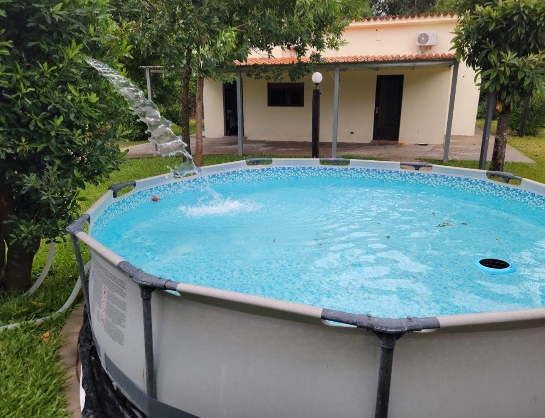El Nido Treehouse is a fully equipped little casita nestled among the trees of our farm in Colonia del Sacramento, Uruguay — with a deck, swings, hammocks, a pool, and a place to light a fire and cook a barbecue. Guests are welcomed with homemade bread and cheese from our farm. We are 10 km from Colonia, a 15-minute drive. Most guests get here by taxi — the fare is around $14 each way. No kids allowed.