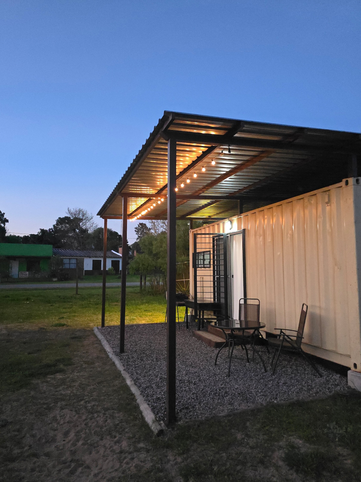 Disfruta días de relax y naturaleza en mi Casa Contenedor. Su diseño fue pensado desde el reciclaje, en base a dos contenedores con su historia vivida en tantos viajes, decorada con muebles comprados en remates y algunos "rescatados" de volquetas Montevideanas, todos restaurados por mí. Construida en un espacio único, rodeado de pinos, a 4 cuadras del Río, con el amanecer que acompaña tus desayunos en el deck o living. Ubicada en la calle principal, frente al Aeropuerto y a 200mts de la ruta.