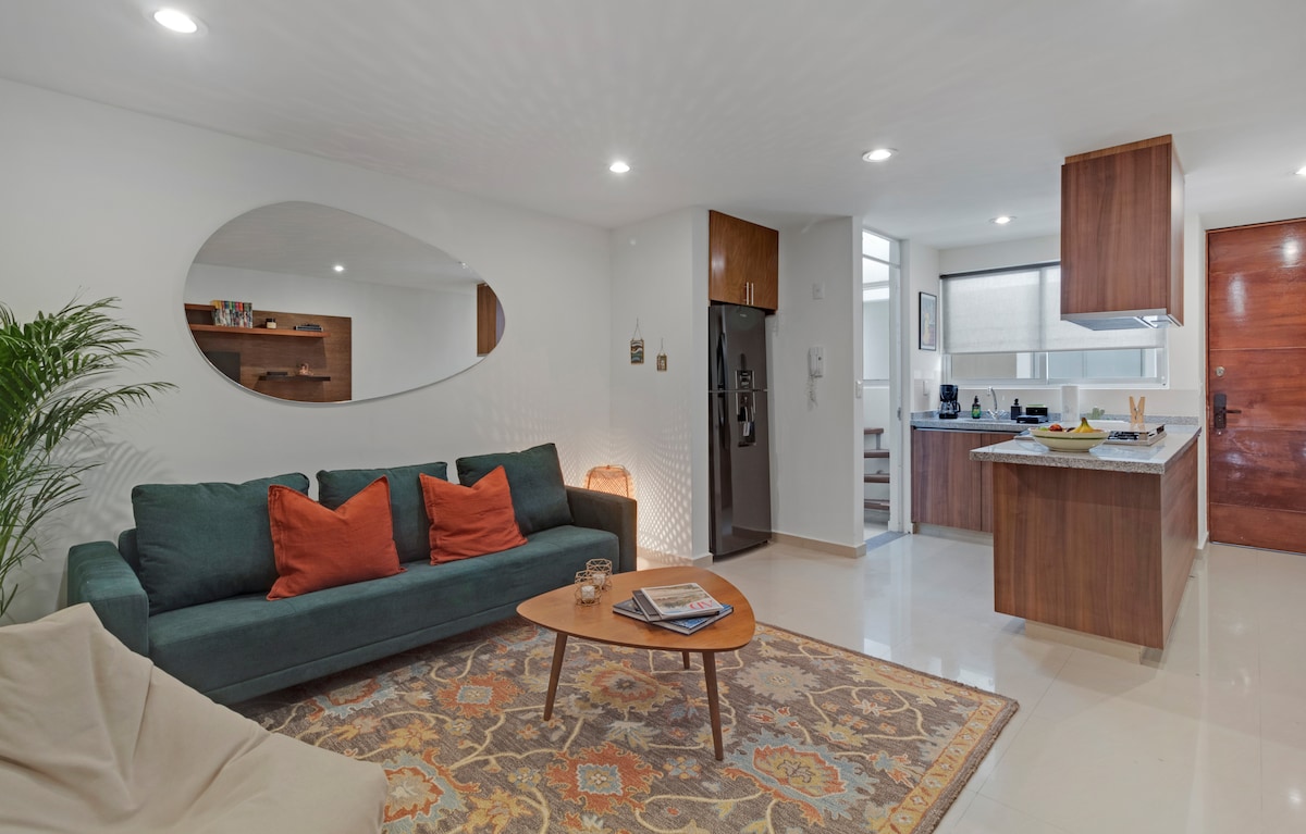 Experience trendy Nápoles, just steps from the WTC and Pepsi Center, a quick 7-minute drive to Condesa and Roma, and just 7 mi (11 km) from Benito Juárez International Airport (MEX), GNP Stadium, and the thrilling Formula 1 Grand Prix. This elegant two-level apartment features a private balcony, a comfortable queen bed, a double sofa bed, a 60” Smart TV, a fully equipped kitchen, and high-speed WiFi. Book now to enjoy sophisticated comfort in Mexico City’s prime location.