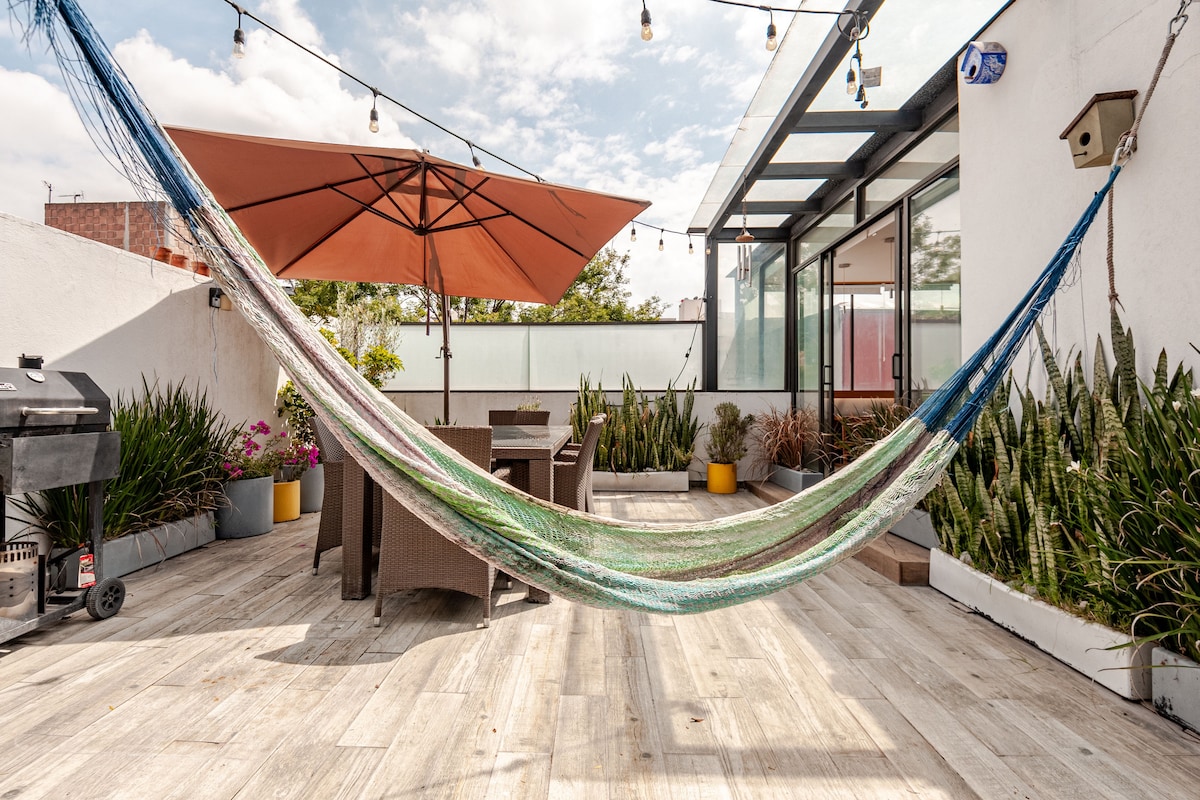 Enjoy the city in a unique and peaceful location in Roma Sur. Our loft, Xoxotic (green in Nahuatl), is located only a few blocks away from Condesa and Roma Norte, two of the “it” neighborhoods in the City, where you can find lovely cafés and bakeries, art galleries, indie boutiques, and some of the best restaurants in Latin America. The loft is on the second floor and there is no elevator, so you have to use stairs to get there.