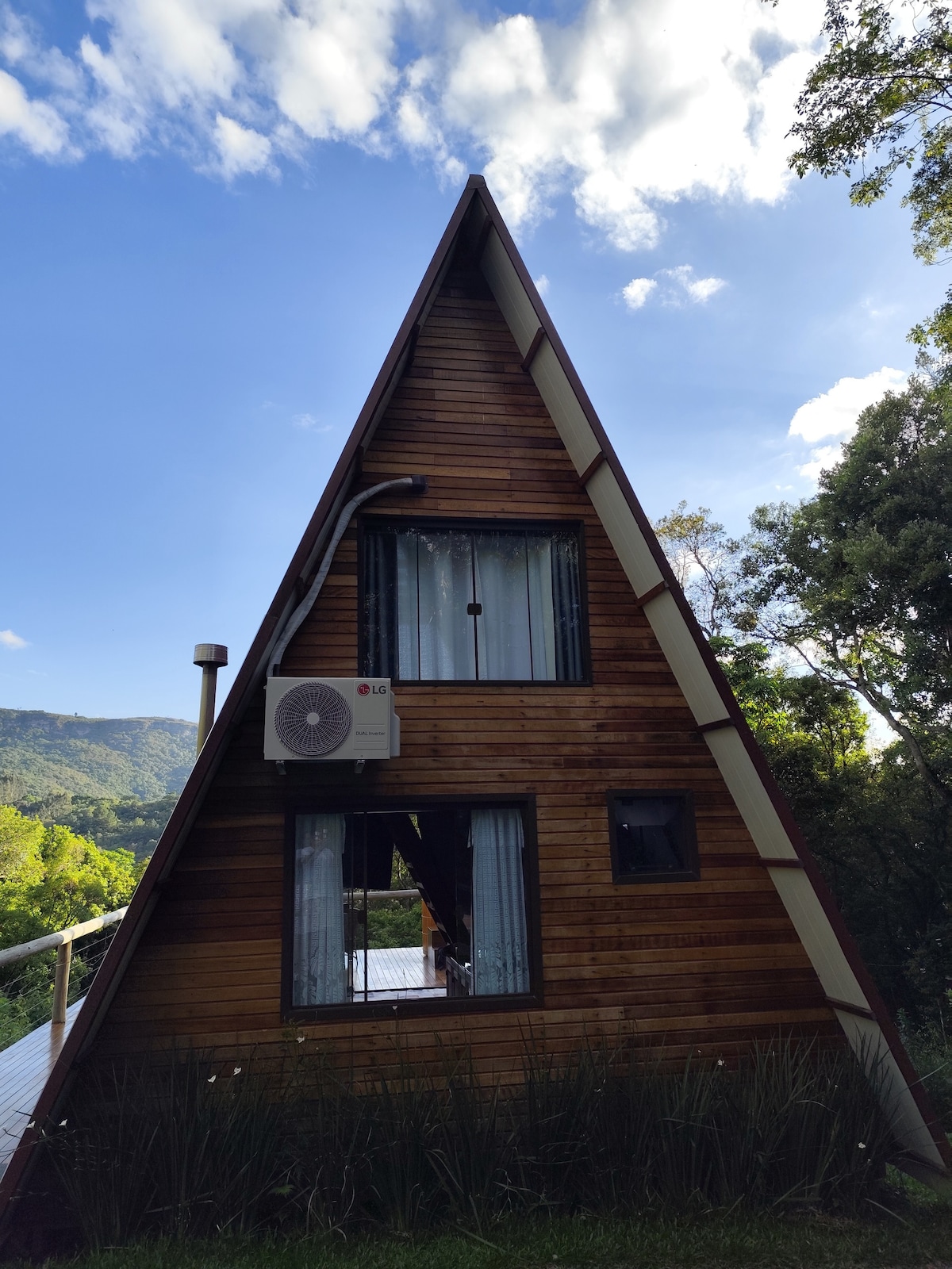 Feita por nós, está integrada a natureza e possui uma vista incrível, ideal para ver o nascer da lua e o pôr do sol, ficar a toa na banheira, no sofá ou debaixo de uma árvore, ela possui uma cama de casal e um sofá cama, frigobar, fogão, chuveiro e banheira de imersão a gás, tem churrasqueira e local para fogueira ao lado. Do estacionamento até a cabana tem uma subida de 50m, possui uma escada Santos Dumont inclinada para acesso ao segundo piso. Temos um mercadinho exclusivo para hóspedes.