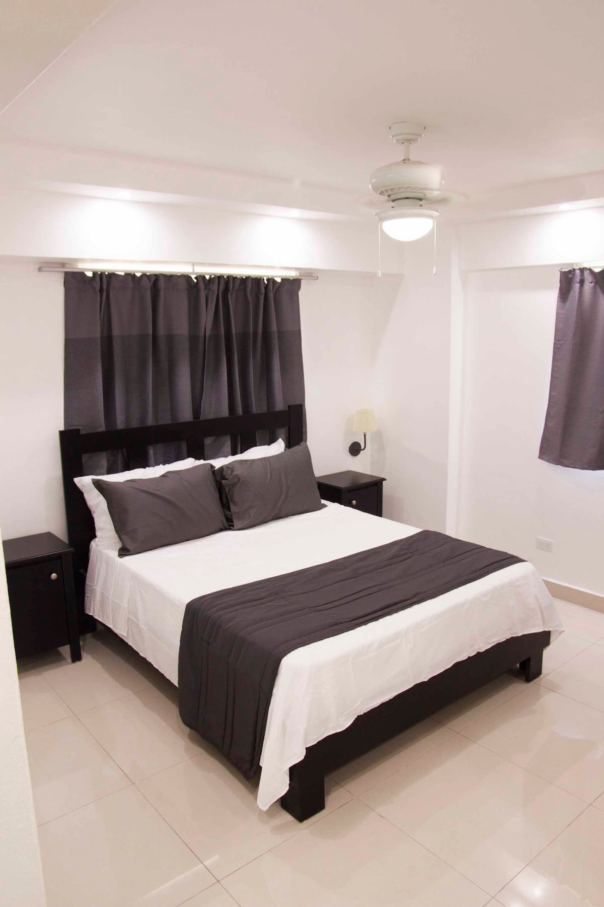 The apartment is located in the Center of Colonial Zone ,two blocks from the Calle el Conde main strett of the Colonial City.There you will find shops, bars restaurants supermarkt and more. Also within walking distance you can visit the Historic Center. The apartment is very confortable clean and the area is quiet,it is equipped with:wi fi 20MB internet full, air conditioning TV ANDROID.,two ceiling fans, an air extrator, full hot shower and equipped kitchen.