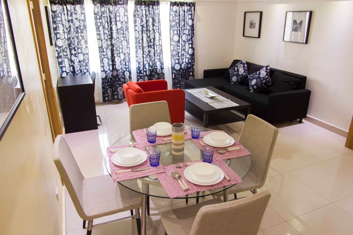 Our apartment is a bright, charming oasis that’s fully domesticated, so it feels like home: Fast WiFi, 32" Smart TVs in the living room and bedroom; Washer and dryer; Our kitchen has everything you need to make it a night or day in if you wish. Our balcony provides great views of the downtown area and the Caribbean sea. It is also furnished with stainless steel appliances as well as a washer and dryer. Guests have full access to the rooftop pool and lounge, the gym, kids center and cinema, as well as an indoor parking spot. Check in with the concierge for theater availability. The concierge will be on hand to tend to any requests or queries you may have. The location is the trendy and bustling downtown area of Santo Domingo. Walk to shops, bars, restaurants, and many of the iconic, colonial destinations the Dominican Republic has to offer. The city's pristine beaches are just a short jaunt away. Light rail, buses, and taxis abound in the area and provide fast transportation to local points of interest. Uber and Lyft are also available. Our building is tended by a doorman and 24/7 security that will further your sense of comfort and safety.