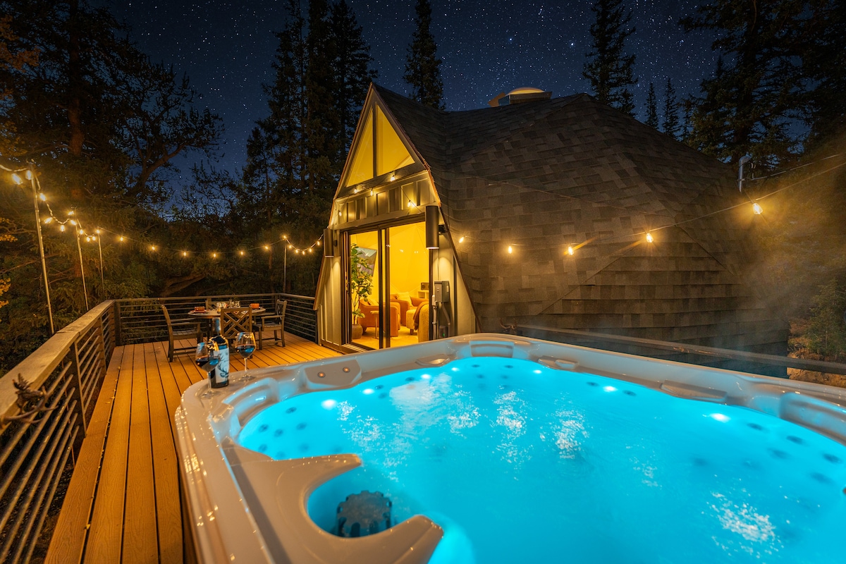 For the first time, you can stay at the legendary Estes Park Dome -- also known as the Snow Globe, the Golf Ball, and even the Death Star (22-ZONE3284). Our geodesic dome captures the imagination as soon as you lay eyes on it. + Eco-friendly rental w/ EV charger, heat pump & more + Deck w/ patio seating + Mins to Hermit Park and Lion's Gulch Trail + Fully stocked kitchen, games, stereo, TV, yoga mats, fast WiFi A whimsical retreat for 6, 10 mins from downtown Estes. Peep the 3d floor plans!