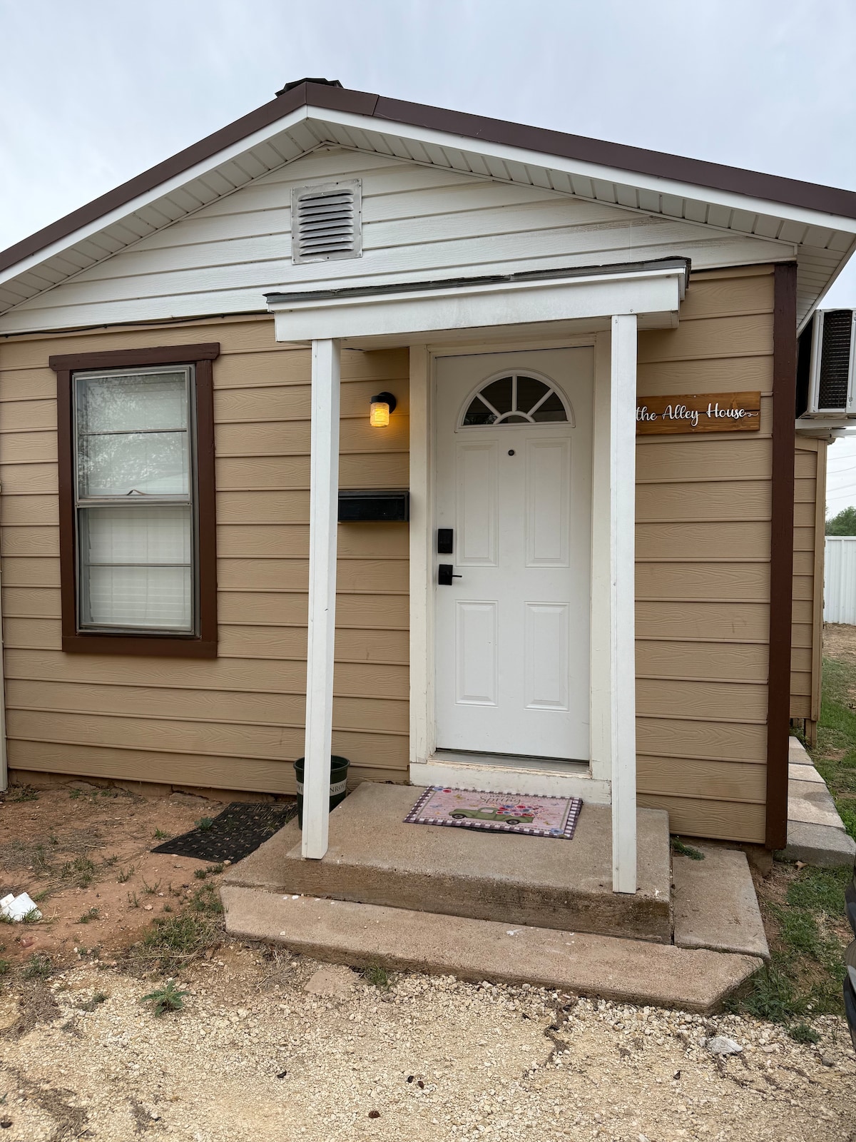 Enjoy a peaceful, restful stay in our cute little Alley House Getaway for up to 3 people. It’s a tiny 1 bedroom apartment with a queen bed, a loveseat that makes into a twin bed if needed, and 2 wall-mounted tvs. The kitchenette offers a coffee station, refrigerator/freezer, portable cooktop, and a microwave. The cabinets are stocked with all your cooking needs. The apartment includes 2 split ac/heating units for added comfort.