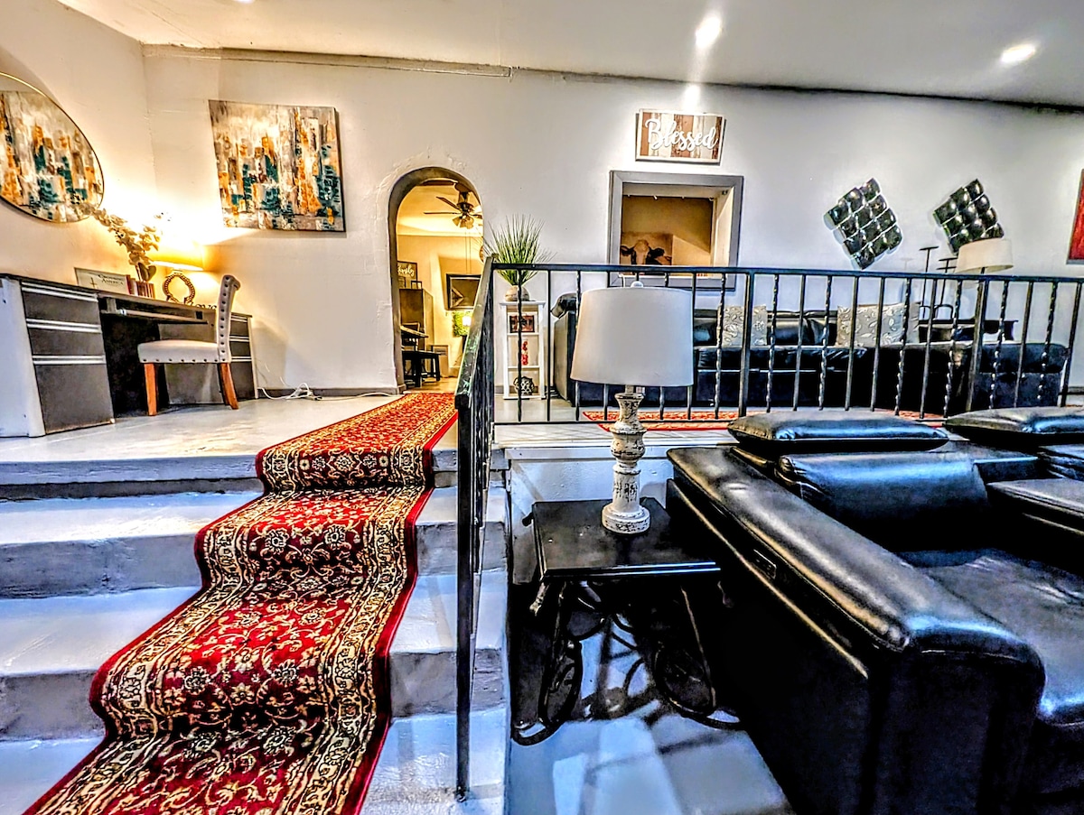 Newly Remodeled 1/2 Duplex. 2 Bedroom home w huge yard! Close to downtown district and I-20. Clean, charming and comfortable! Bedrooms have quality furniture, luxury mattresses and linens, feather pillows, and rustic decor. Nicely decorated living space & comfortable furniture. Smart TV's in living & bedrooms-w Cable, WIFI, Internet. Washer/Dryer. Kitchen stocked with everything you need to enjoy your stay while away from home! King Bed, Queen Bed, Queen Air Mattress. FREE 24/7 GYM ACCESS!
