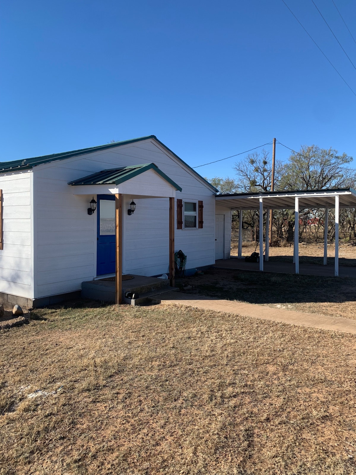 A cozy 280 sq. ft. tiny house in the country is a great place to take it easy and enjoy the West Texas sunsets, star gazing and wildlife. Less than 10 min. from some of the best BBQ in West Texas, World's Largest Rattlesnake Roundup (March) and minutes from area lakes for great fishing. The home has an open concept kitchen, living room and queen size bed. The bathroom features a large metal stock tank bathtub with shower. WiFi and Secure parking area.