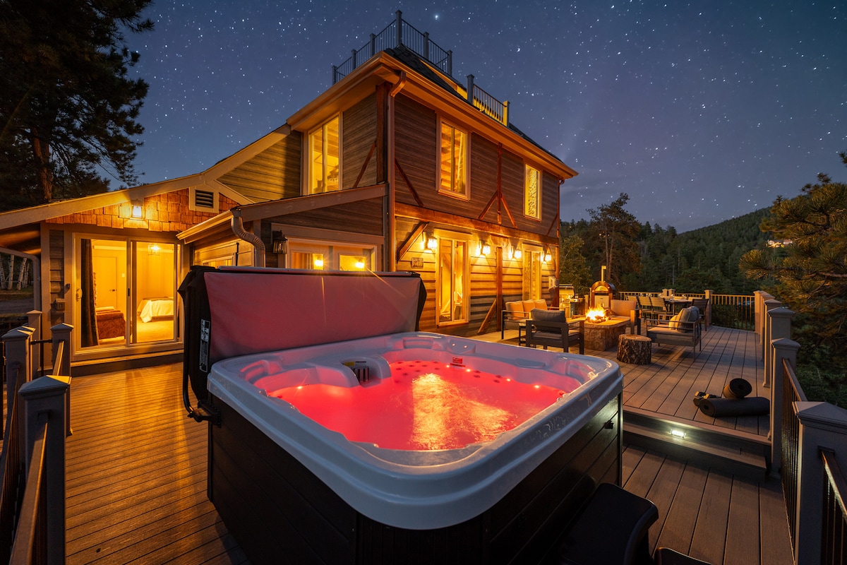 ★★★★★ “The perfect blend of luxury and nature.” – Haley 💦 SPA BATHROOMS – Steam shower + jetted tub 🌿 HOT TUB & HAMMOCK – Soak creekside or sway in the trees 🔥 COZY EVENINGS – Fire pit, BBQ grill, fireplaces & in-floor heat ❄️ COOL COMFORT – Summer A/C 🐾 PET & FAMILY-FRIENDLY – Trails, Pack ’n Play, high chair 📶 FAST WI-FI – Stream, Zoom, or unplug 📍 10 min ⭆ Nederland — mtn town & adventure hub ➳ Breathe deep. Reconnect with what matters. ♡ Tap Save —unforgettable cabin stays start here