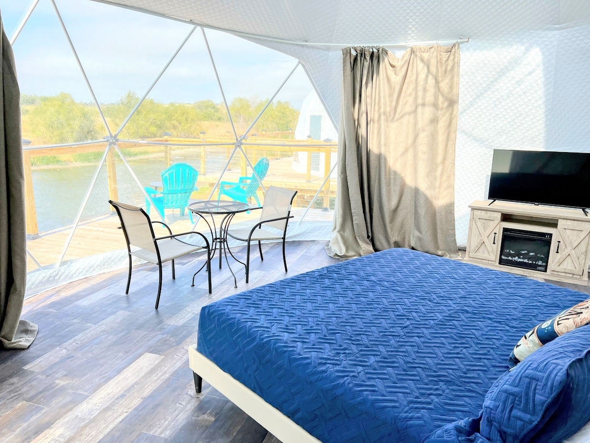 Reconnect with nature at this unforgettable escape. The Refuge dome is located in the middle of a National Wildlife Refuge where you can enjoy nature at its finest. A wonderful place to unwind and unplug with all the modern amenities that allow for a top tier glamping experience. On a clear night you can witness the stars and the Milky Way. You can see pristine sunsets and observe deer, turkey, numerous bird species, and other wildlife from the comforts of this beautiful dome. Pets are allowed.