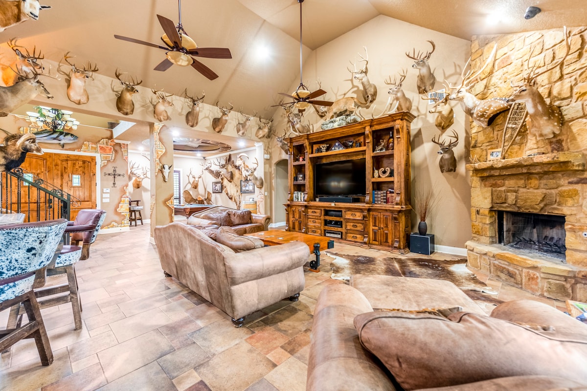 Welcome to our expansive 3,000 acre wildlife ranch in Central TX! Perfect for reunions, corporate events, and large celebrations, this unique property offers both adventure and relaxation with stunning views. This private property boasts 6 rustic cabins, a common lodge for group hang-outs with an apartment above, and bunk room. Explore attractions in College Station, Temple, and other historic towns, and unwind at our serene property.