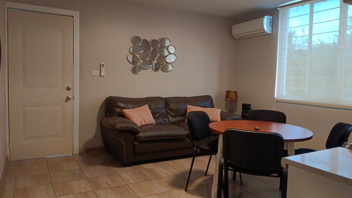 Te encantará la ubicación de este alojamiento, es el lugar perfecto para aquellos que buscan una estancia cómoda y completa. El departamento está decorado con un estilo moderno y sofisticado, con muebles de alta calidad. Entre los servicios se incluye: - Aire acondicionado y calefacción -Cocina equipada -Estacionamiento privado y gratuito -Planta baja Además el departamento se encuentra a 5 minutos del puente internacional #1. Así como restaurantes,farmacias y bancos