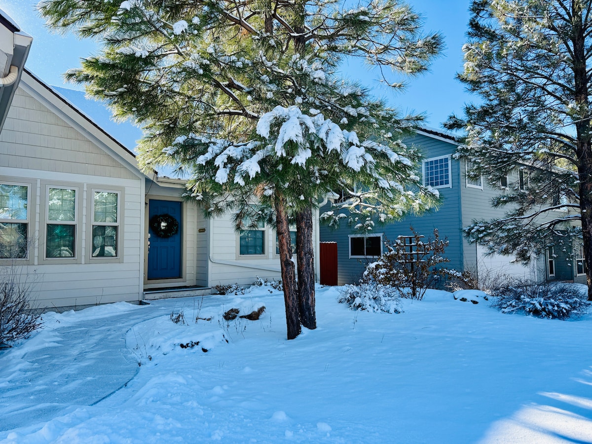 Enjoy this peaceful retreat with views of a mature forest and the San Francisco Peaks! Deer and elk graze across the ravine outside your bedroom window, and hummingbirds drink nectar from the abundant wildflowers. This is a really special spot! Still, our home sits inside Flagstaff, with all its amenities: cafes, roasteries, beer gardens, and breweries. Snow Bowl, Sedona, and the GC are not too far from us, along with many other day trip hikes and destinations. We love this place! Come join us!