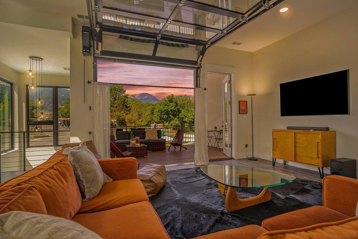 This unforgettable home in Colorado Springs delivers dreamy mountain views and unique indoor–outdoor living on every floor. 🌄 Unique garage door feature providing views and natural light. 🏓 Garage rec room w/ ping pong 🚴 Bikes & scooter included 🍽️ Walk-out living + dining area 🛏️ Sleeps 6–9 comfortably Your perfect Colorado Springs escape awaits.