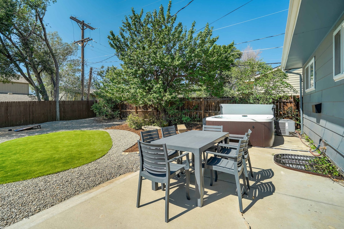 ★5 Star cleaning team trained in disinfecting + sanitation ★2 blocks to downtown & to local coffee ★Short drive to CO College, Garden of the Gods, Pikes Peak, USAFA ★Fenced in yard w/FIREPIT, HOT TUB & GRILL ★Smart TVs in living room & bedroom w/access to apps ★BRAND NEW★ comfortable bed! ★Equipped kitchen ★FAMILY FRIENDLY: Pack n play, baby bath, high chair, baby moniters, games + more! ★BUSINESS: FAST WIFI, KEYLESS ENTRY, charging station & G00gle Home ★Off street parking ★Free Colorado soda