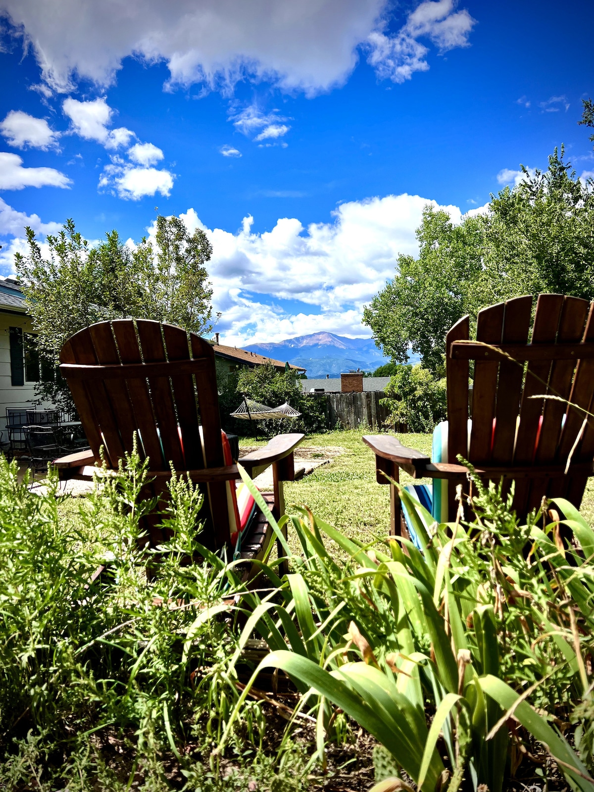 Enjoy stunning views of the sun setting behind Pikes Peak through floor-to-ceiling windows! Sip your morning coffee on the private patio as a family of deer wander by. Walk into the Garden of the Gods and then relax in the hot tub beneath the stars. Prepare a delicious meal with everything you need already provided for you; cookware, oils, and spices - and enjoy it with mountain views as your backdrop Discover your ideal Colorado Springs retreat in my lovingly renovated historic guesthouse!