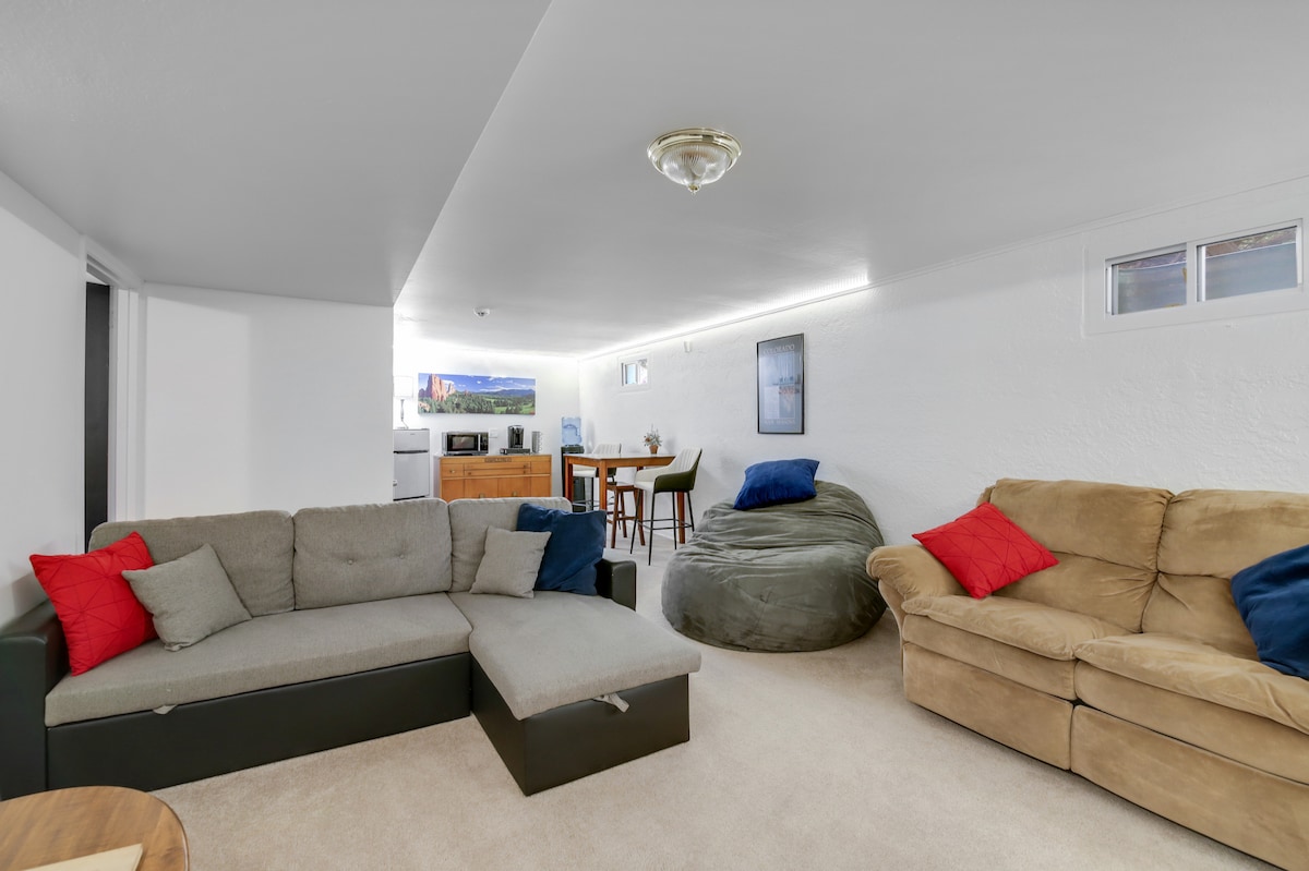 This private basement Suite is in a quiet, well-established neighborhood that is within walking distance to Garden of the Gods Park and a short drive to the base of Pikes Peak. The outside entrance goes down to the large living space with a private bedroom and bathroom. The ample kitchenette offers essentials, including a microwave, refrigerator, coffee maker, and a water cooler. there is no kitchen plumbing. This is a working home . You may hear people getting ready for work and in and out.