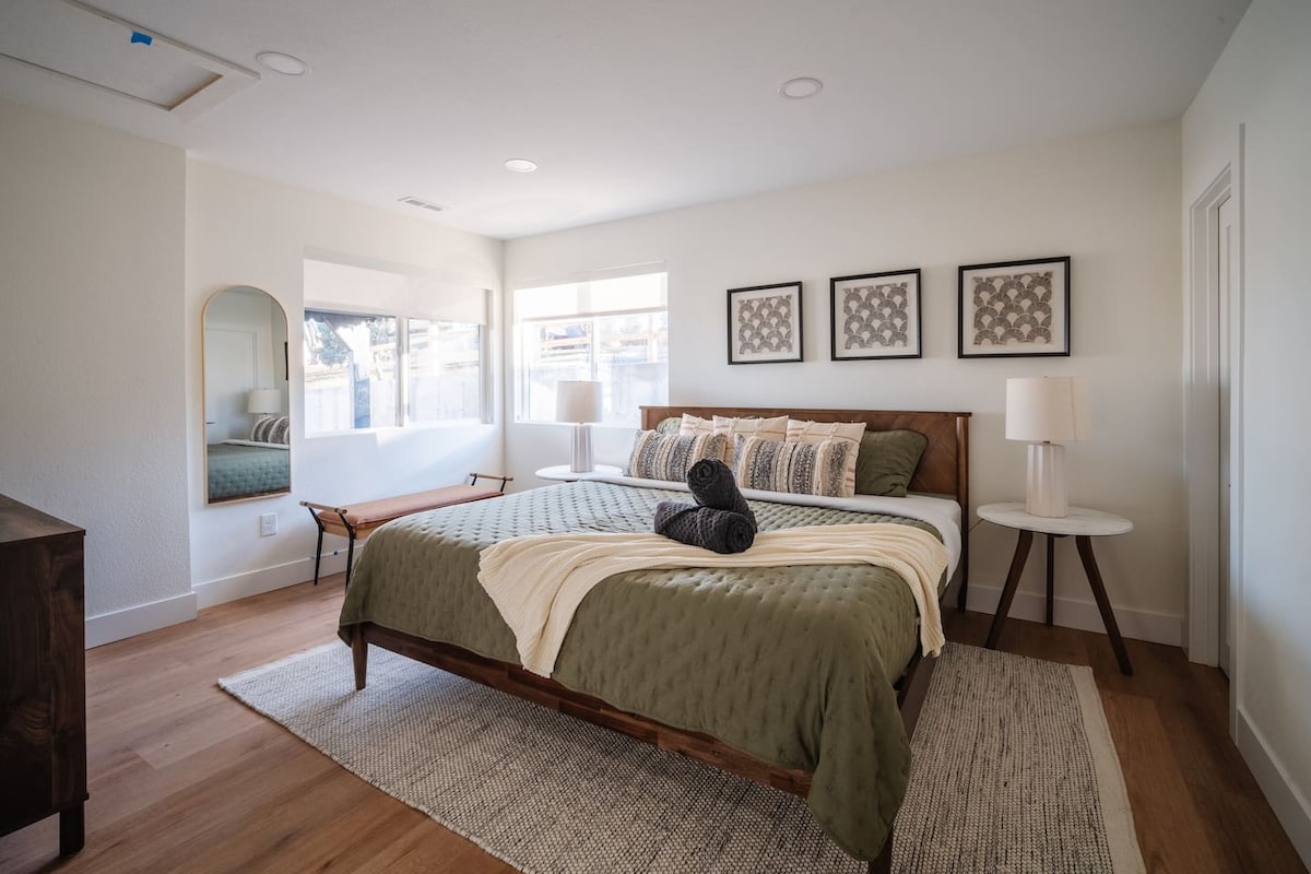 Welcome to The Warren Jr., a modern, newly renovated duplex nestled in Colorado Springs in the Ivywild Neighborhood. Blending comfort, convenience, and contemporary accommodations, enjoy your home away from home with a king plush bed plus a queen sofa bed, fully stocked kitchen, coffee/tea bar, fast WiFi, private hot tub & fire pit, reserved parking, and central heating & A/C – rare in Colorado!