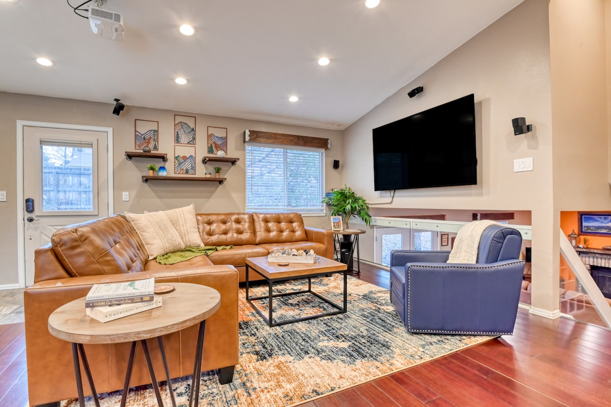 ★Five Star cleaning team trained in disinfecting & sanitation ★Attractively located on the west side, 1 mi to downtown ★Short drive to CO College, Garden of the Gods, Pikes Peak, USAFA ★Fenced in backyard w/pergola, firepit, hot tub & grill ★Vintage typewriter & record player w/record selection ★BRAND NEW★ comfortable beds! ★Equipped kitchen w/blender, toaster, coffee maker, etc ★FAST WIFI & bluetooth speaker for BUSINESS TRAVEL ★50” Roku TV in living room, Hulu, Netflix, DVD ★Free Colorado soda