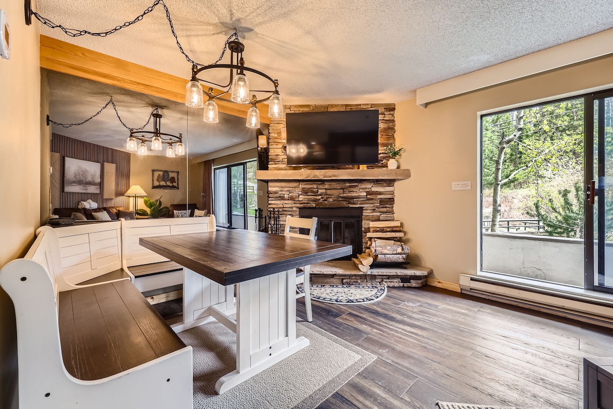 The perfect location for a Breckenridge immersion for groups of up to 8 guests! With an unbeatable location just a short walk away from main street and downtown Breck, you and your guests will be thrilled with the convenience of being so close to all there is to offer in town. Great for close-knit groups and families, this 2BD condo boasts a beautiful kitchen area, plenty of dining and living room space, and a hot tub on deck. After a day of adventuring, this is the place you want to be!